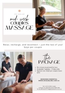 Unwind together with Spa Sublime’s Midweek 60-Minute Couples Package.